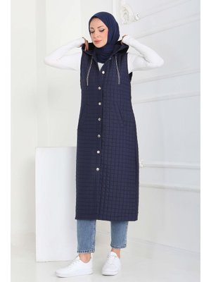 Tofisa Lacivert Lacıvert Cepli Zincir Detaylı Kapitone Yelek