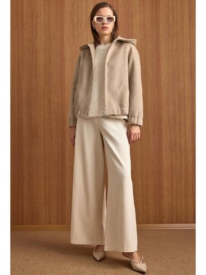 Olcay Kapüşonlu Beli Lastikli Oversize Kısa Kaban Taş