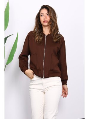 İmaj Butik Kahverengi Fermuarlı Scuba Kısa Ceket