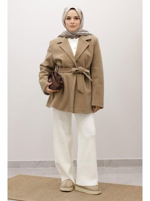 Tesettür Dünyası Camel Cepli Fox Kaban