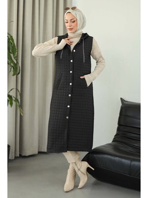 Tofisa Siyah Sıyah Cepli Zincir Detaylı Kapitone Yelek