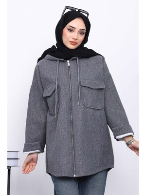 İmaj Butik Füme Kapüşonlu Çift Cepli Kaşe Ceket