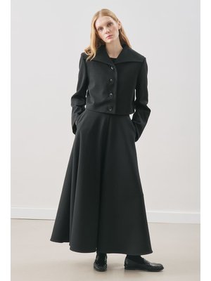MANUKA Siyah Loren Kısa Geniş Yakalı Ceket