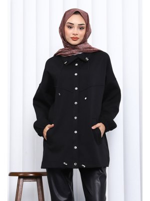 İmaj Butik Siyah Çıtçıt Detaylı Cepli Ceket
