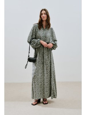 MANUKA Çağla Desenli Viskon Bağlamalı Elbise Lıly