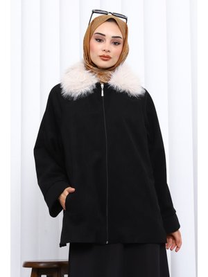 İmaj Butik Siyah Yaka Kürk Detaylı Süet Ceket