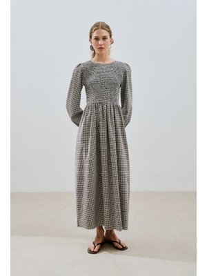 MANUKA Kahverengi Pötikare Gipeli Elbise