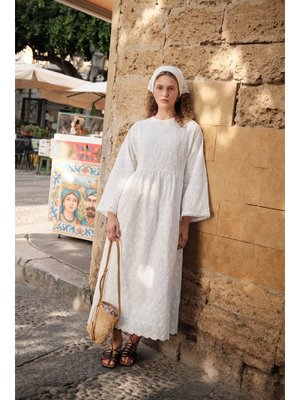 MANUKA Ekru Nakışlı Geniş Kollu Elbise
