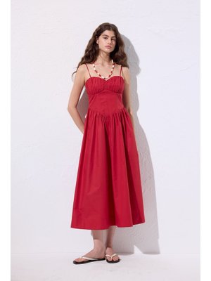 MANUKA Kırmızı Büzgülü Korsajlı Elbise