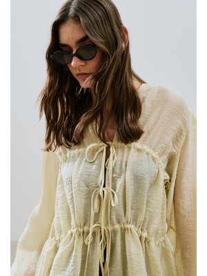 MANUKA Sarı Büzgülü Bağlamalı Bluz Soft