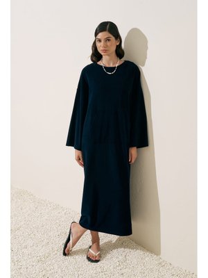 MANUKA Lacivert Havlu Kumaş Rahat Elbise