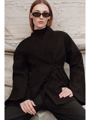 MANUKA Siyah Aroa Bağlamalı Kaşe Ceket