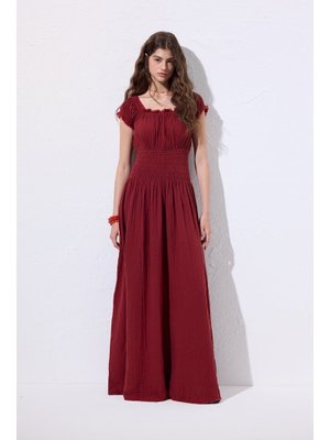 MANUKA Kırmızı Müslin Büzgülü Elbise