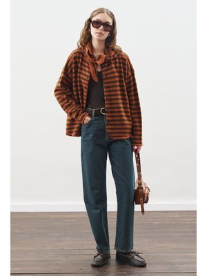 MANUKA Kahverengi Atkı Detaylı Çizgili Hırka