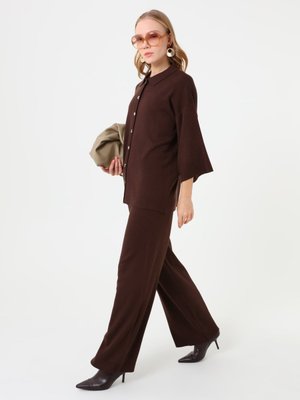 Refka Kahverengi Yumuşak Tuşeli Polo Yaka Düğmeli Triko Takım