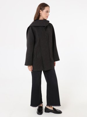 Refka Siyah Atkı Detaylı Kaşe Kaban