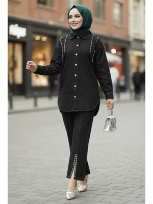 Harmatime butik Ceket Pantolon İkili Kot Siyah Takım