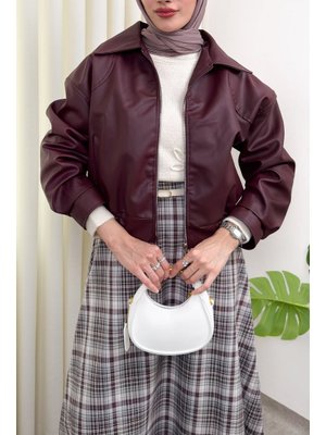 Salih Çelebi Bordo Beli Lastikli Suni Deri Ceket