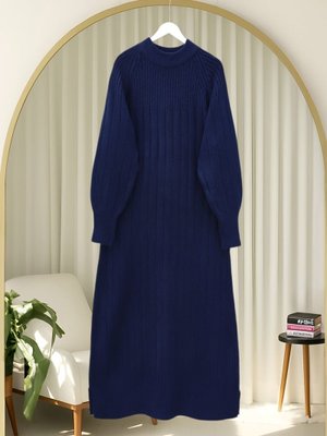 Podyumplus Laci Fitilli Yırtmaçlı Uzun Triko Elbise