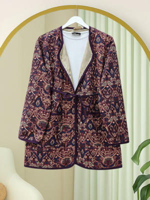 Podyumplus Mor Çift Cepli Çıtçıt Düğmeli Astarlı Kapitone Ceket
