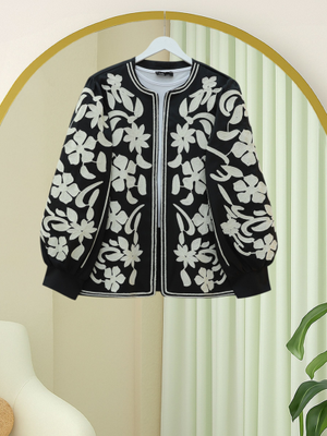 Podyumplus Siyah Kolu Ve Önü Nakışlı Astarlı Ceket