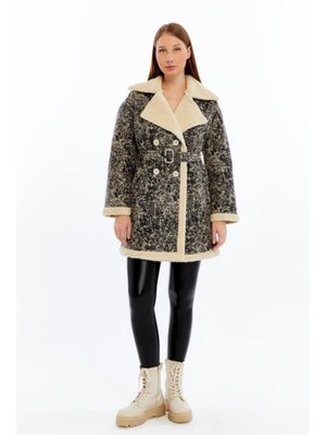 Jamila Kürklü Uzun Suni Deri Mont Bej