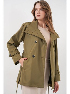 Bigdart Haki Kruvaze Yaka Kısa Trençkot