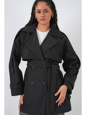 Bigdart Siyah Kuşaklı Kısa Trençkot