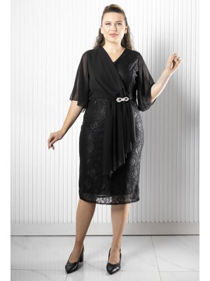 MODAVİKİ Siyah Şifon Detaylı Abiye Elbise