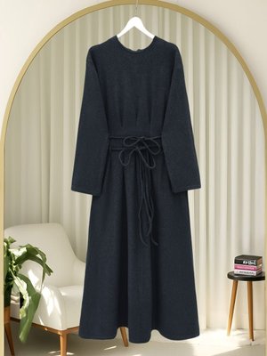 Podyumplus Antrasit Beli Drapeli Çift Bağcıklı Selanik Elbise