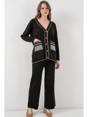 Bigdart Siyah Cepli Hırka Triko İkili Takım