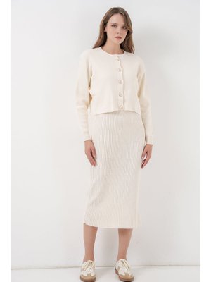 Bigdart Ekru Hırka Elbise Triko İkili Takım