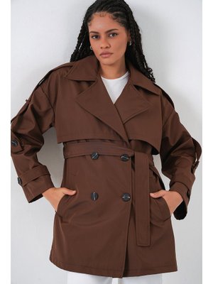 Bigdart Kahverengi Kuşaklı Kısa Trençkot