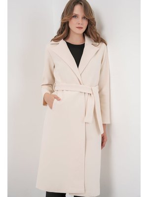 Bigdart Ekru Kruvaze Yaka Kaşe Kaban