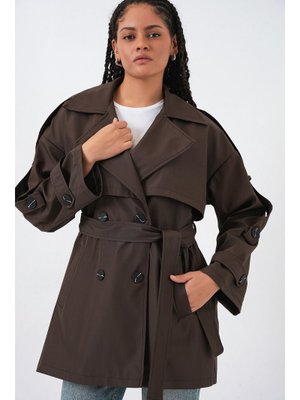 Bigdart A.kahve Kuşaklı Kısa Trençkot
