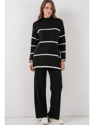 Bigdart Siyah Çizgili Oversize Triko İkili Takım