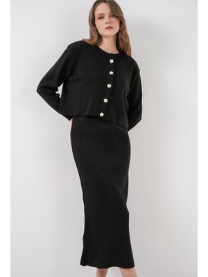 Bigdart Siyah Hırka Elbise Triko İkili Takım