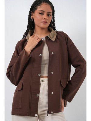 Bigdart Kahverengi Cep Detaylı Oversize Ceket