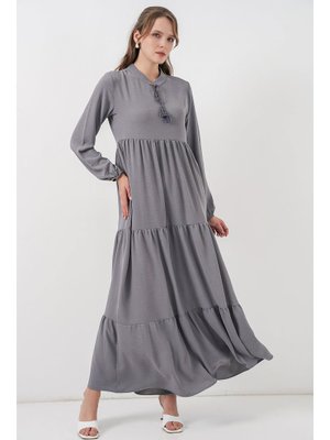 Bigdart Gri Yaka Bağcıklı Elbise