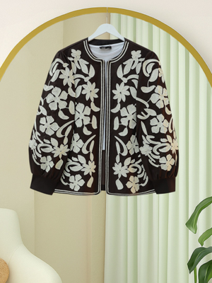 Podyumplus K. Kahve Kolu Ve Önü Nakışlı Astarlı Ceket