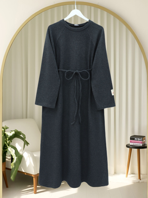 Podyumplus Antrasit Beli Bağlamalı Yuvarlak Yaka Selanik Elbise