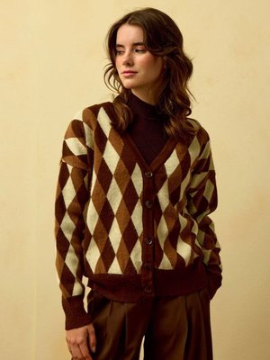 Ceylan Otantik Acı Kahve Baklava Desenli Triko Hırka