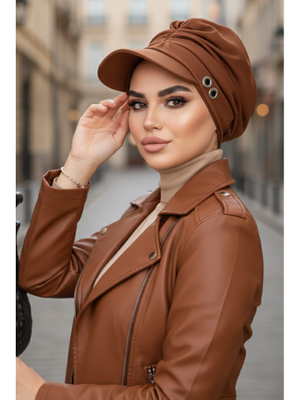 AİŞE TESETTÜR Karamel Metal Detaylı Şapka Bone