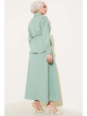 Volt Clothing Yeşil Önü Büzgülü Etekli Bluz İkili Takım