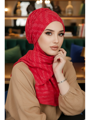 AİŞE TESETTÜR Kırmızı Desen Kışlık Kelebek Bone Şal