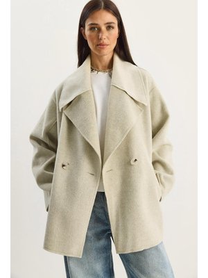 Bianco Lucci Bej Geniş Yaka Cep Detaylı Oversize Kaşe Kaban