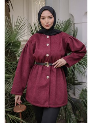İmaj Butik Bordo Bel Lastikli Kemerli Kaşe Çeket