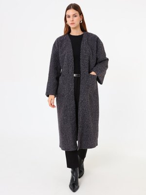 Refka Gri Deri Kemer Detaylı Kalın Hırka