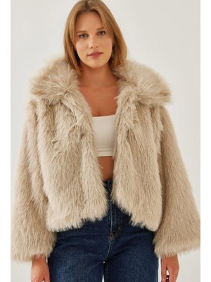 Bianco Lucci Bej Yakalı Suni Kürklü Astarlı Mont