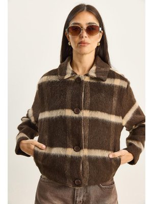 Bianco Lucci Kahverengi Bej Cep Detaylı Astarlı Ekose Mont